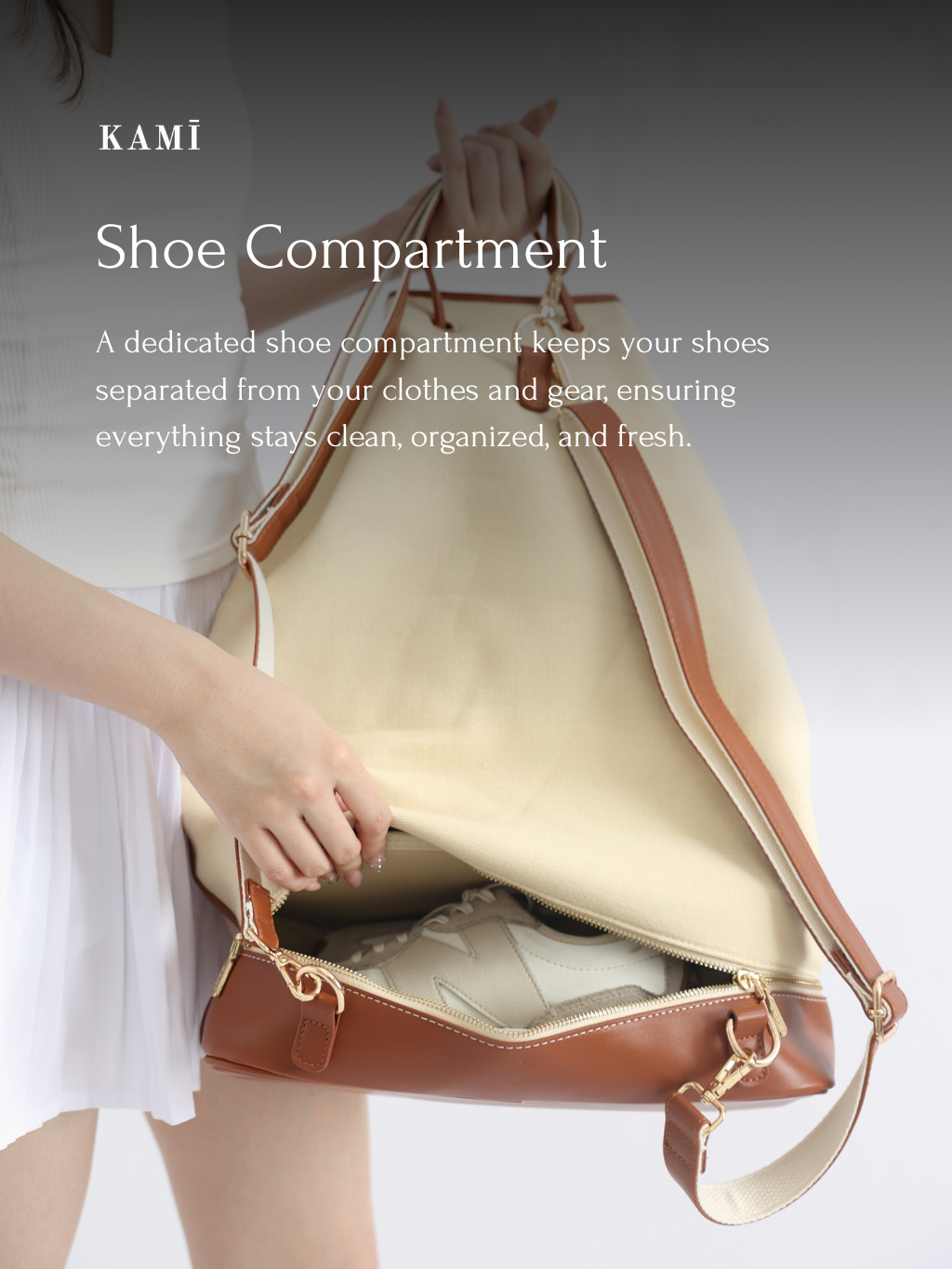 - Bottom shoe compartment to keep footwear separated and fresh