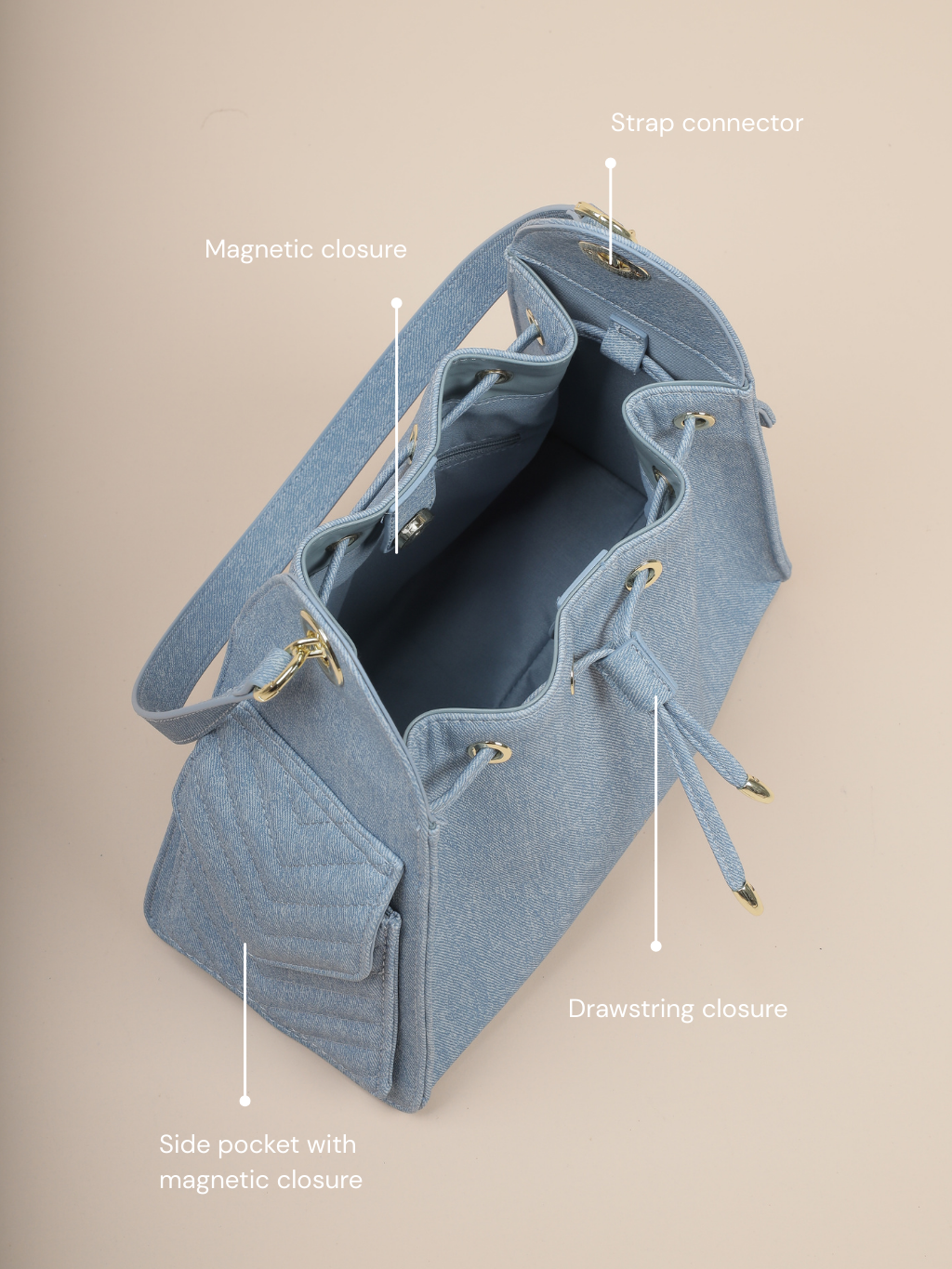Crafted from grained vegan leather & denim leather, this statement piece is durable yet stylish.