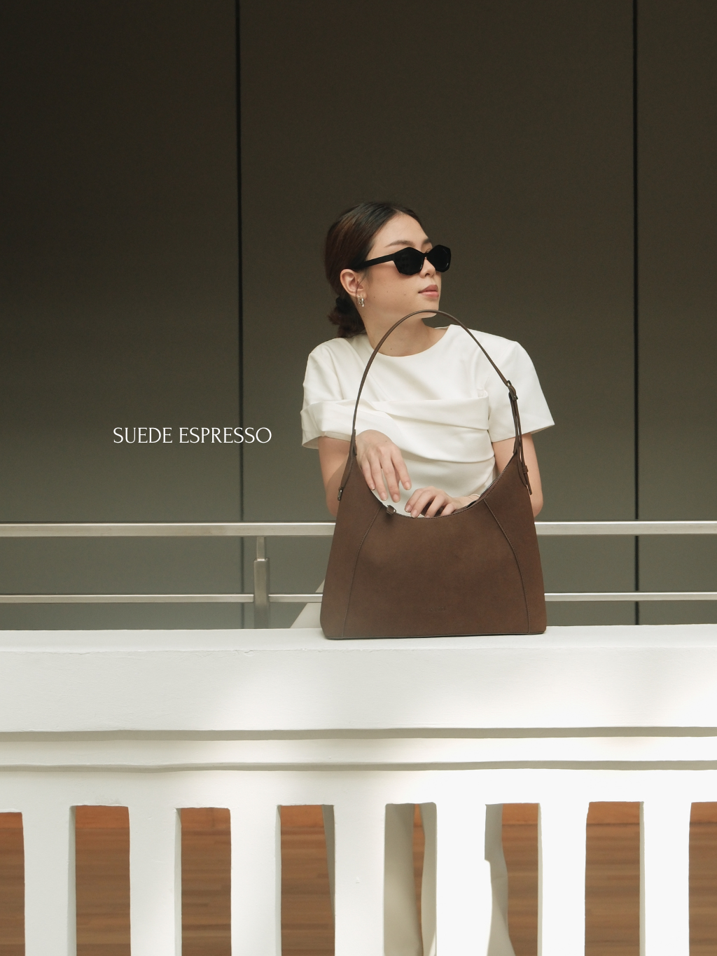 Crafted in premium suede and smooth leather with black chrome hardware, Rodeo comes in an autumn rustic palette🍂: Dark Coffee Leather, Taupe Leather, Suede Espresso, Suede Black & Suede Camel